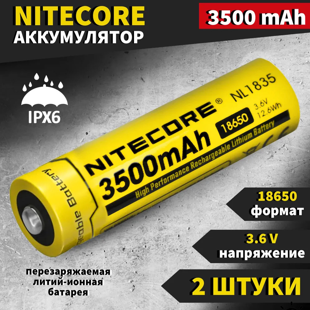 Аккумулятор Li-Ion NITECORE 18650 3500 mAh 3.6V (2 штуки) / Перезаряжаемый литий-ионный элемент питания с пимпочкой (защищенный) / Аккумуляторная батарейка литиевая