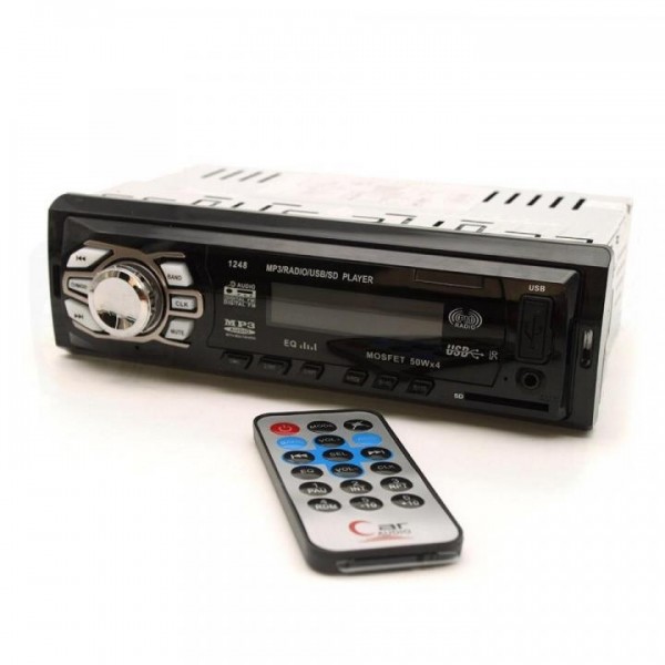 Для удобства использования, в комплекте имеется пульт дистанционного управления магнитолой. Автомагнитола имеет классическую панель, где расположены: жидкокристаллический дисплей, регулятор громкости, аудио вход, USB и SD разъемы, AUX вход и кнопки переключения между треками и радиостанциями.