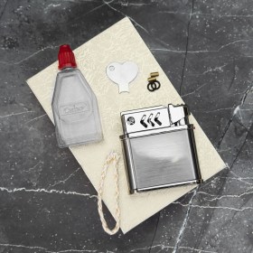 - В комплекте к зажигалке прилагаются: фирменная коробка, бензин в пластиковой ёмкости, фитиль (1 шт.) и кремний (2 шт.), специальный ключик, резинка для колёсика зажигалки (2 шт.);