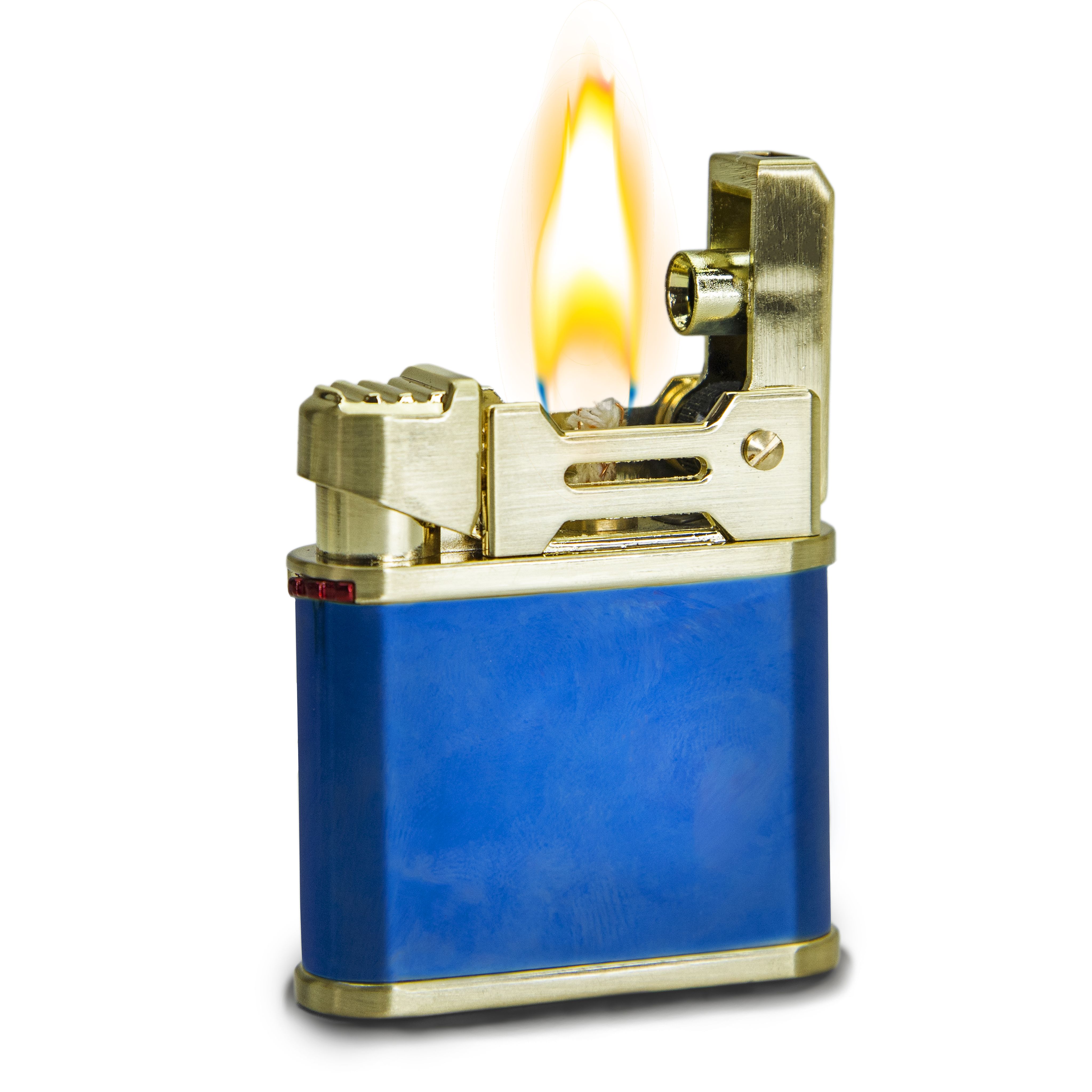 • Механизм работы: специальный замок-колесико сдвигается в сторону, нажимается кнопка. Далее одновременно откидывается крышка зажигалки, высекаются искры и поджигается фитиль;