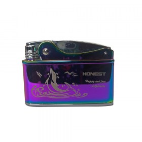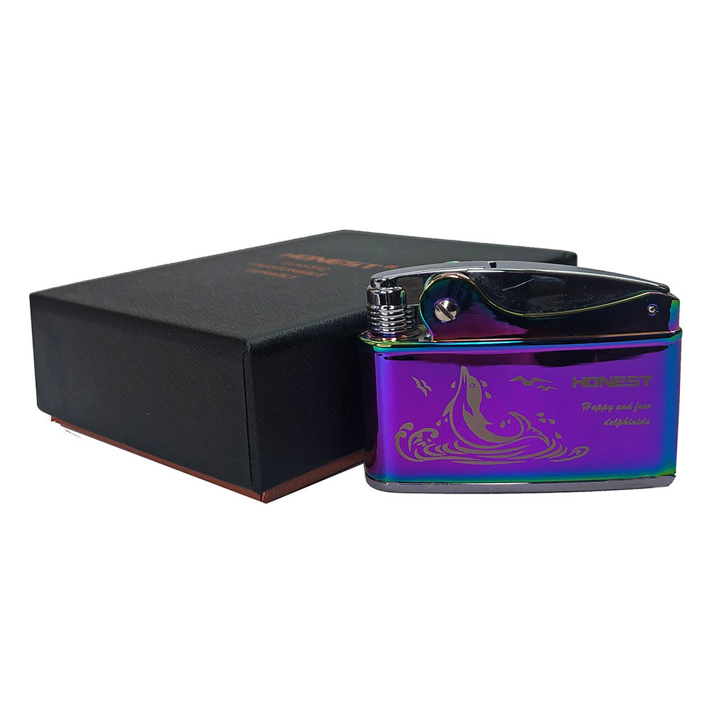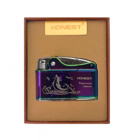 Автоматическая бензиновая зажигалка, механика, сталь HONEST дельфин (хамелеон)