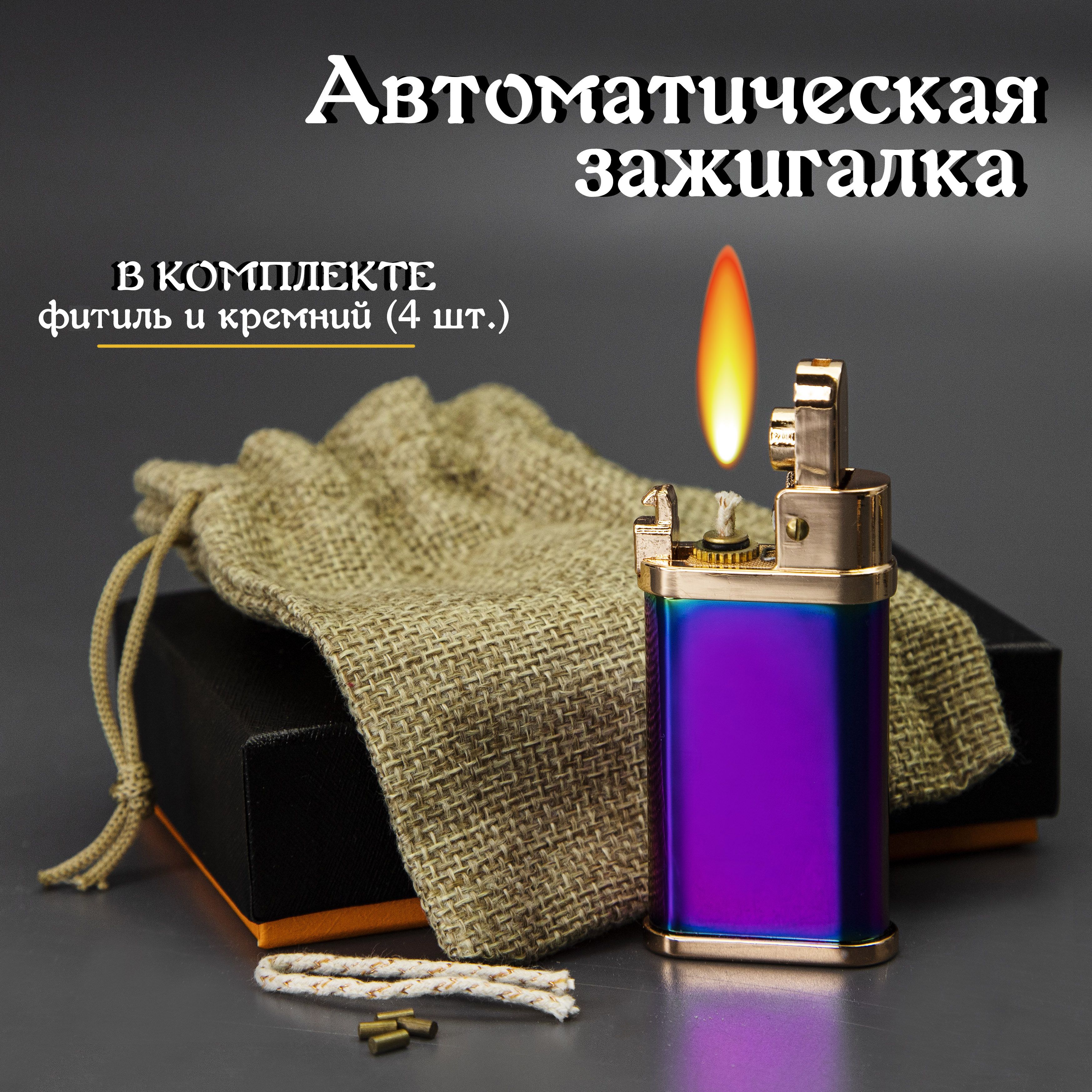 Бензиновая автоматическая зажигалка (разноцветный глянец) / Фитиль и кремний в комплекте