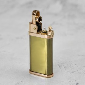- Механизм работы: при нажатии на кнопку откидывается крышка, одновременно высекаются искры и поджигается фитиль;