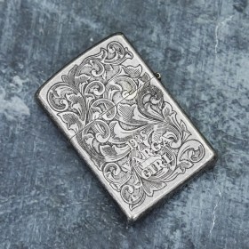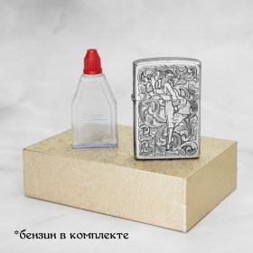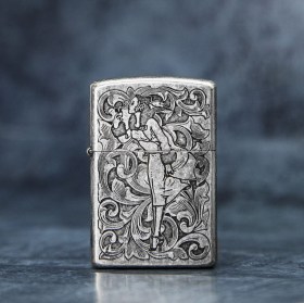 Стильная и прочная бензиновая зажигалка. Выполнена в винтажном стиле, с объемным орнаментом "Girl".