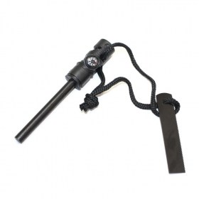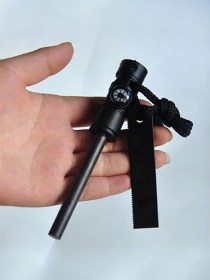 Во многих ситуациях огниво представляет собой чуть ли не единственную возможность развести огонь. Например, отсыревшие спички и пустая зажигалка известны каждому туристу. Разводить огонь руками – скорее удача в сочетании с жарким днём и обилием сухого топлива. Огниво же, искры которого обладают потрясающей температурой, позволит вам разжечь костёр в любую погоду. Изделие состоит из двух частей, скреплённых нейлоновым шнурком для удобства использования и хранения. На ручке огнива присутствует компас и свисток для подачи сигналов.