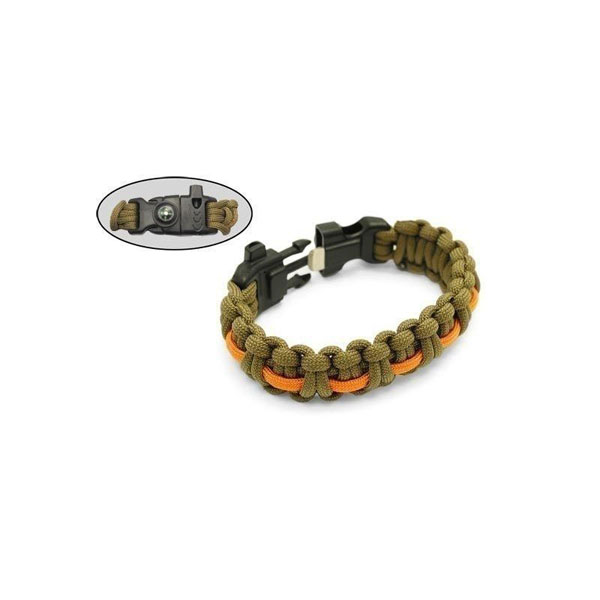 Браслет со свистком, компасом и огнивом Плетение: "Кобра" Замок: фастекс пластик 24 мм Размеры: Длина: 250 мм Ширина: 24 мм Материал: паракорд/пластик