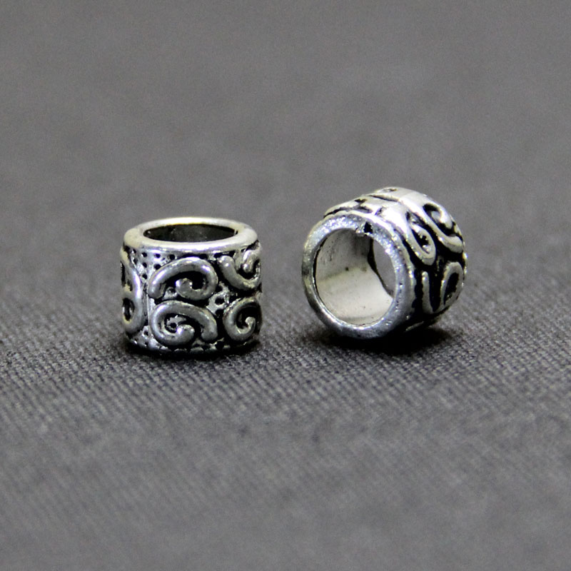 Универсальная (темляк, браслет) Бусина на паракорд. Металлический бочонок с цветочным узором. Диаметр отверстия 4мм. Габариты 8*10мм.