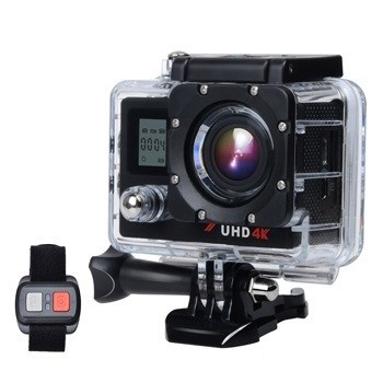 Камера водонепроницаема при работе на глубине до 30 м. Устройство укомплектовано большим количеством дополнительных аксессуаров. Камера имеет встроенный Wi-Fi и пульт дистанционного управления.
