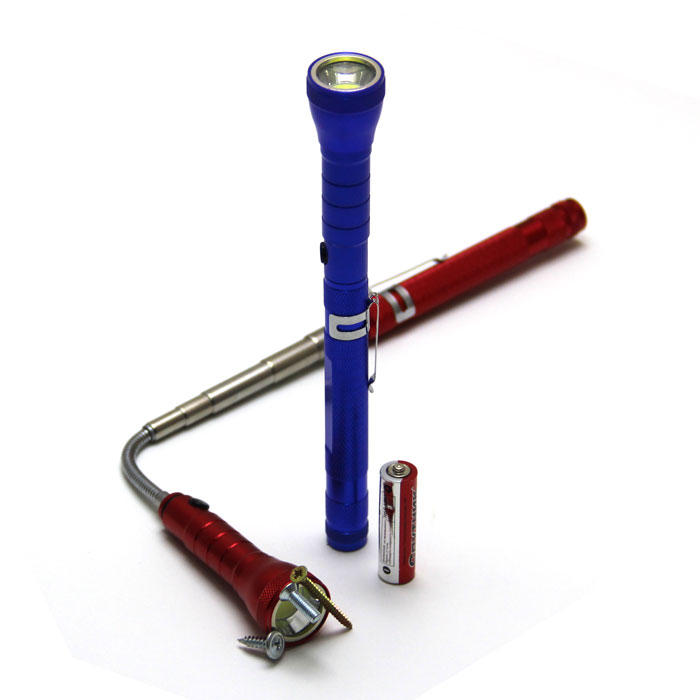 Телескопический выдвижной фонарик с магнитом – идеальное средство для освещения труднодоступных мест. Фонарик выполнен с телескопической выдвижной гибкой конструкцией, длинной и удобной алюминиевой ручкой, которая может выдвигаться на 60 см. – удобное и эффективное средство для освещения мест, куда не может протянуться рука человека со стандартным фонарем.