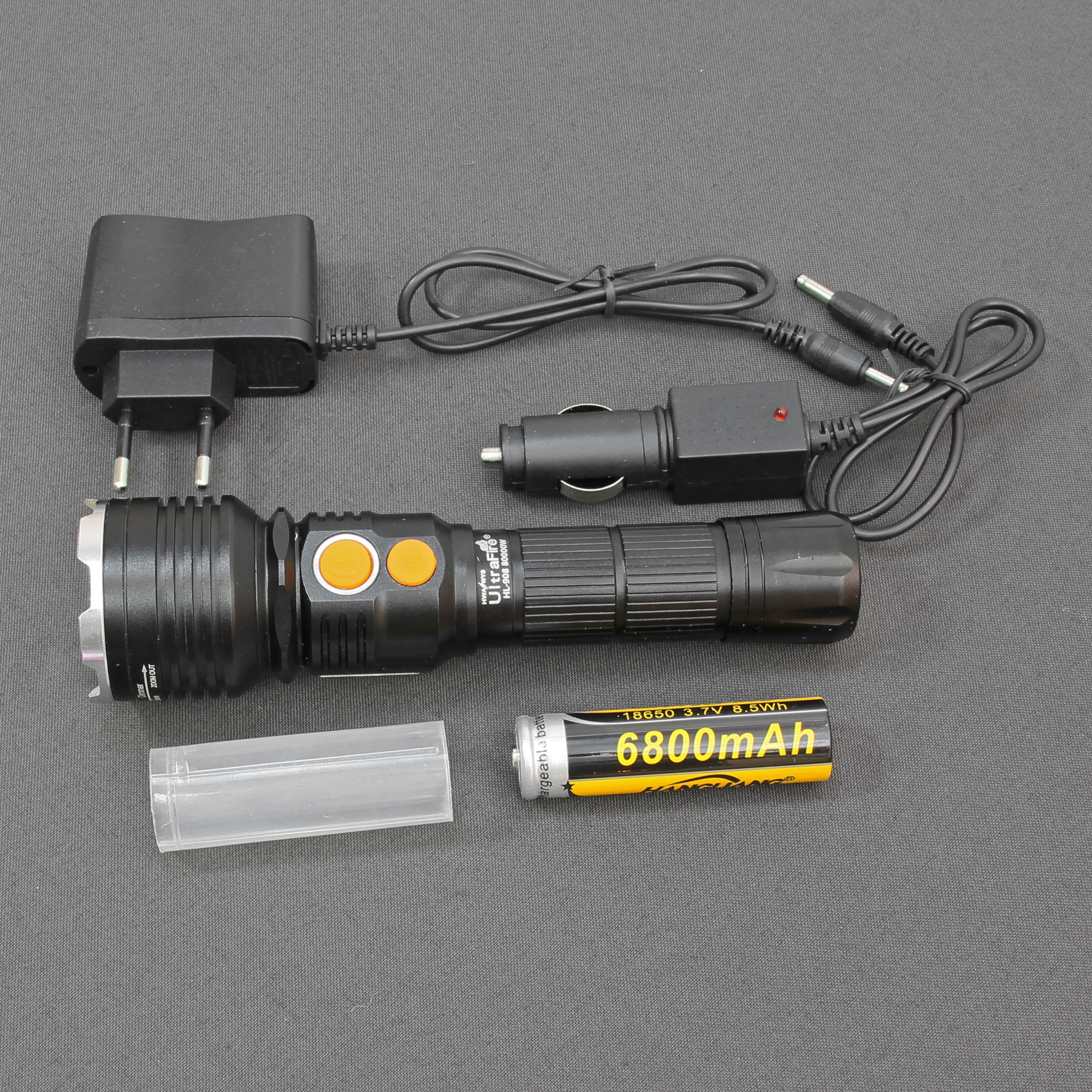 Диод CREE T6-WC, в комплекте зарядное устройство от сети 220 В и от автомобильного гнезда прикуривателя