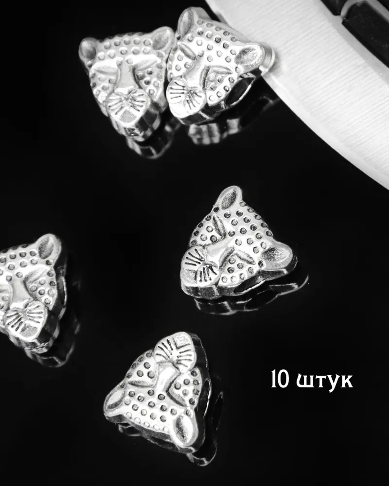 - Форма (вид) бусины: голова леопарда; - Комплект представляет собой набор из 10 бусин; - Диаметр отверстия: 4 мм; - Размер бусины: длина 12 мм х ширина 13 мм х высота 9 мм; -Компл
