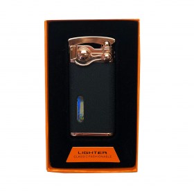 Газовая зажигалка турбо, стальная, с окошком топливника Steampunk (черный)