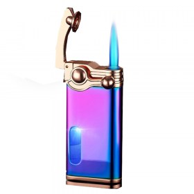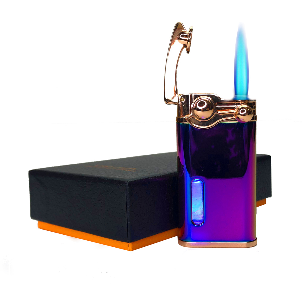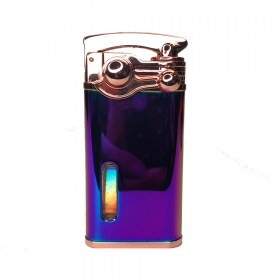 Газовая зажигалка турбо, стальная, с окошком топливника Steampunk (хамелеон)