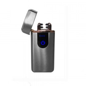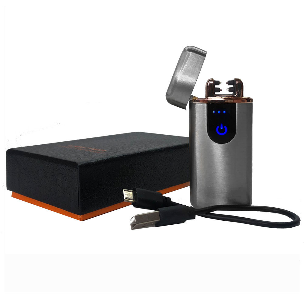 Импульсная электрическая USB зажигалка сенсорная две дуги, ветрозащитная (серый)