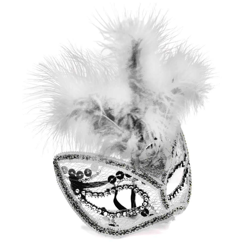 Карнавальная маска 3 пера и бант (детская) белая