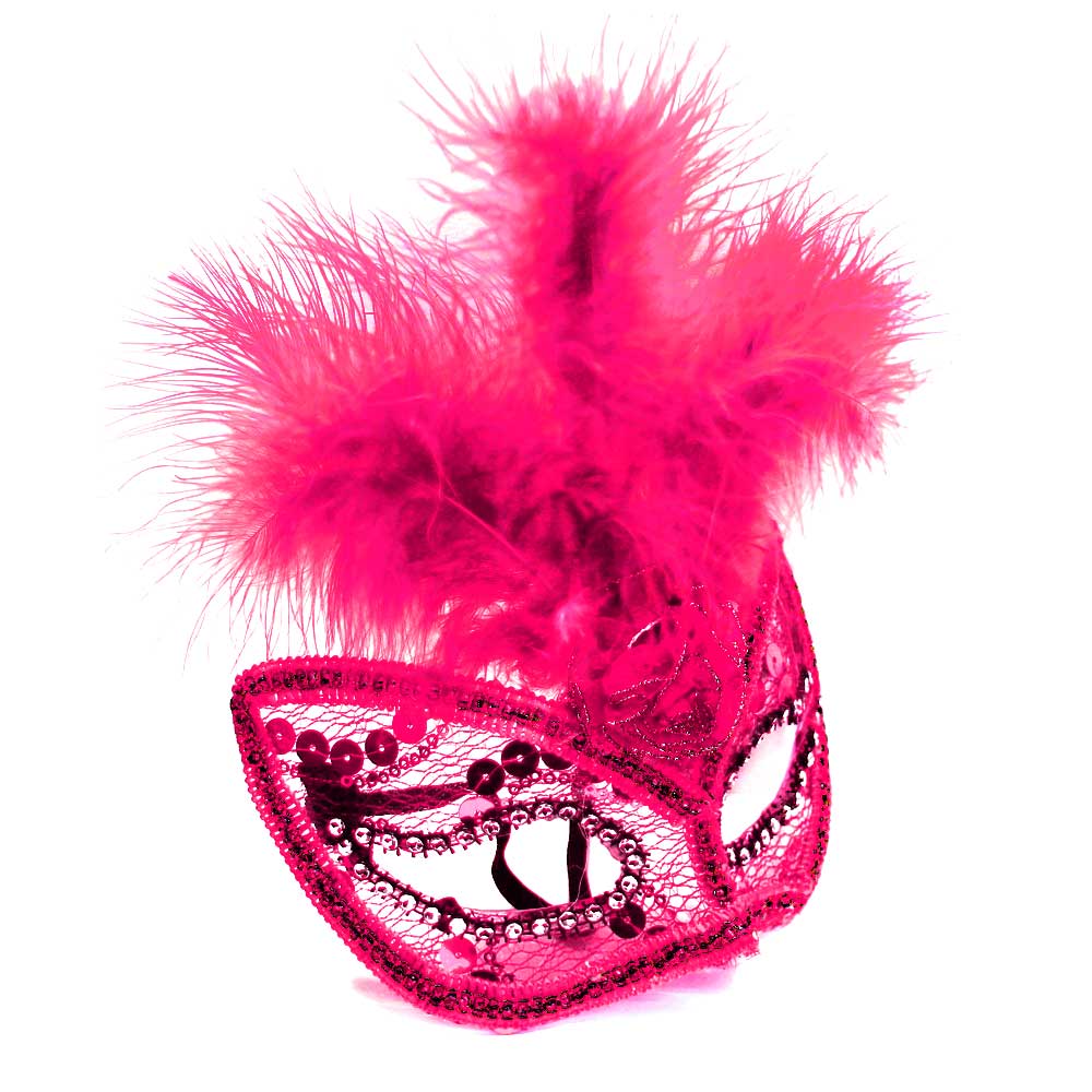 Карнавальная маска 3 пера и бант (детская) малина
