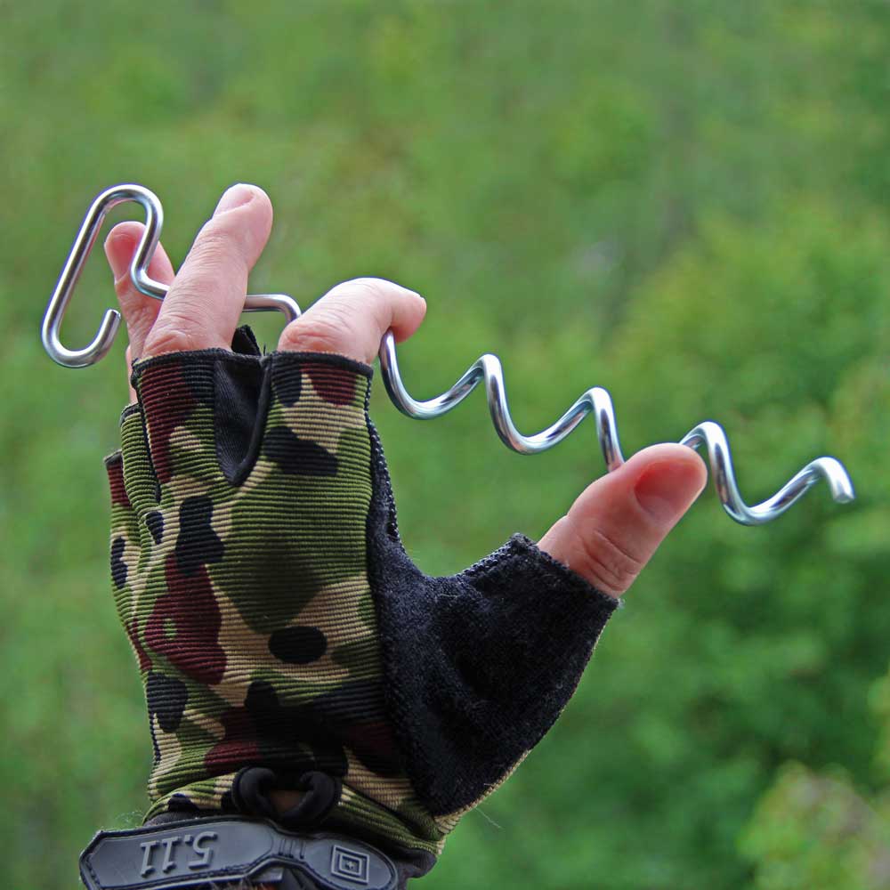 - 1 Колышек: Если Вы расположились на открытом пространстве, то необходимо использовать минимум 1 винтовой колышек. Даже сильный ураганный ветер, не сможет вырвать винтовой колышек, и Вашу палатку не унесет в волшебную страну, хотя и возможно повреждение палатки, которая будет болтаться на одном креплении.