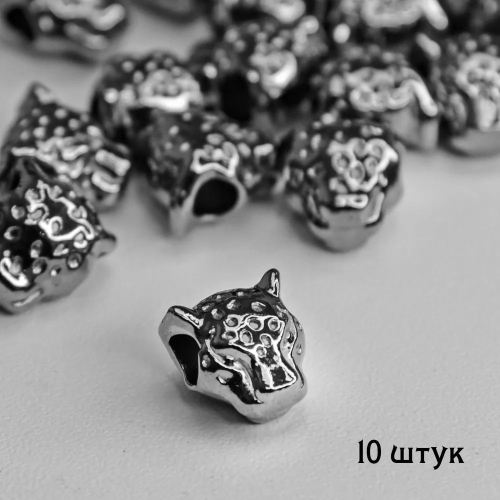 - Форма (вид) бусины: голова леопарда; - Комплект представляет собой набор из 10 бусин; - Диаметр отверстия: 4 мм; - Размер бусины: длина 12 мм х ширина 13 мм х высота 9 мм; - Средний вес бусины: 3.25 грамма; - Расположения отверстия: горизонтально; - Производства: Китай.