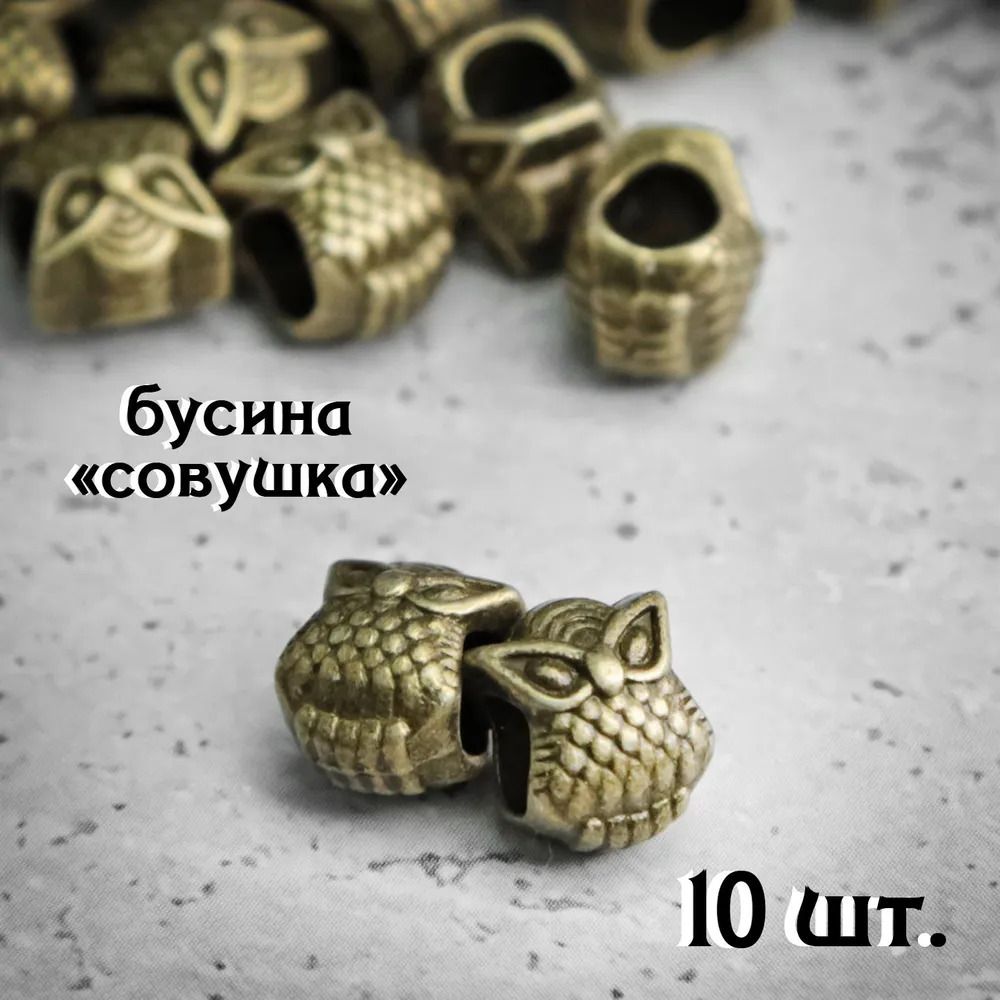 - Форма (вид) бусины: золотая совушка; - Комплект представляет собой набор из 10 бусин; - Диаметр отверстия: 4 мм; - Размер бусины: длина 9 мм х ширина 8 мм х высота 8 мм; - Средний вес бусины: 1.57 грамма; - Расположения отверстия: горизонтально; - Производства: Китай.