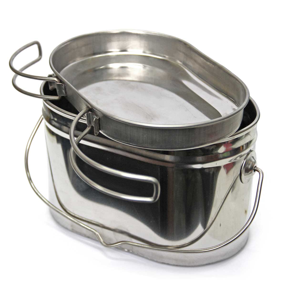 Набор посуды изготовлен из высококачественной нержавеющей стали с зеркальной полировкой. Удобная подвижная ручка. Можно использовать прямо на плите или костре.