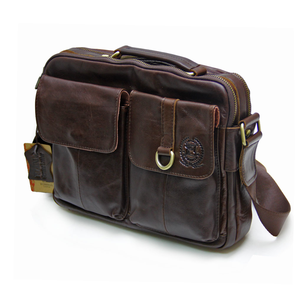 Мужской портфель в отличии от подобных, сделан полностью из натуральной кожи. Имеет два внешних кармана, внутри отделение для ноутбука (до 13 дюймов), органайзер и одно отделение на молнии, например для денег. Так же имеется большое отделение на молнии на задней части портфеля.