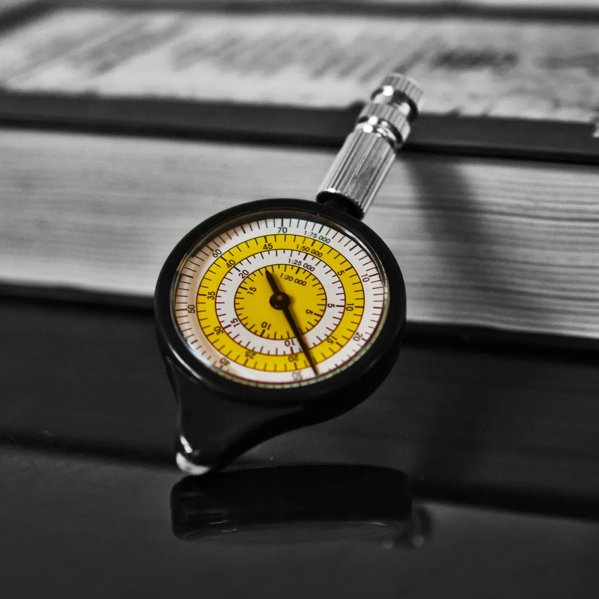 Курвиметр ручной армейский для карт. Курвиметр служит для измерения отрезков кривых и извилистых линий на топографических картах. Корпус курвиметра изготовлен из пластика. Ручка и измерительное колесико выполнены из стали. Прибор имеет две шкалы с подвижными стрелками. Одна шкала предназначена для карт масштабом 1:20000, 1:25000, 1:50000, 1:75000; другая - для измерения реального расстояния в километрах и милях. Чтобы измерить, для этого нужно взять прибор за ручку и провести валиком по линии, требующей измерения. На шкале диска отразится то количество делений, которые прошел валик. Не нужно пытаться измерить весь отрезок за один раз. Гораздо проще и удобнее сделать это в несколько этапов. Страна: Россия ГОСТ: Нет Опасный товар: Нет Сезонность: Всесезонный Вес: 60 грамм