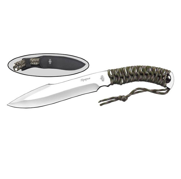 Производитель- Витязь Страна- Россия Oбщая длина- 305 мм Длина клинка- 185 мм Толщина клинка- 3,5 Сталь- 50Х14МФ, Рукоять- сталь, обмотка паракордом Чехол- нейлон