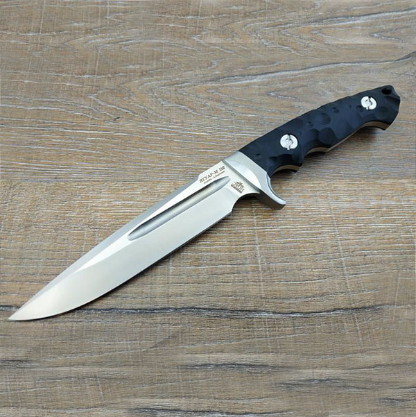 Нож с фиксированным клинком Ягуар М Д2 Нокс. Прочный цельнометаллический клинок с полуторной заточкой и притупленным фальшлезвием. Дополнительную прочность клинку придает дол, гармонично вписываясь в совершенный дизайн ножа. Для более удобного хвата есть подпальцевый выступ. На рукояти ножа установлены накладки из пластика G-10, закрепленные двусторонними винтами, что способствует в случае необходимости легко их заменить. Сама рукоять надежно удерживается в руке при силовой работе. На ноже имеется отверстие для темляка. Клинок ножа изготовлен из инструментальной стали D2.
