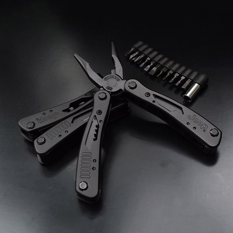 Jeep Stanley Monster Hunter продается в чехле из нейлоновой ткани для удобства транспортировки, а самое главное то, что он компактного размера и в комплекте имеет насадки в виде бит, а также множество приспособлений, которые помогут открыть консервную банку, отрезать батон хлеба, открутить саморезы и многое другое.