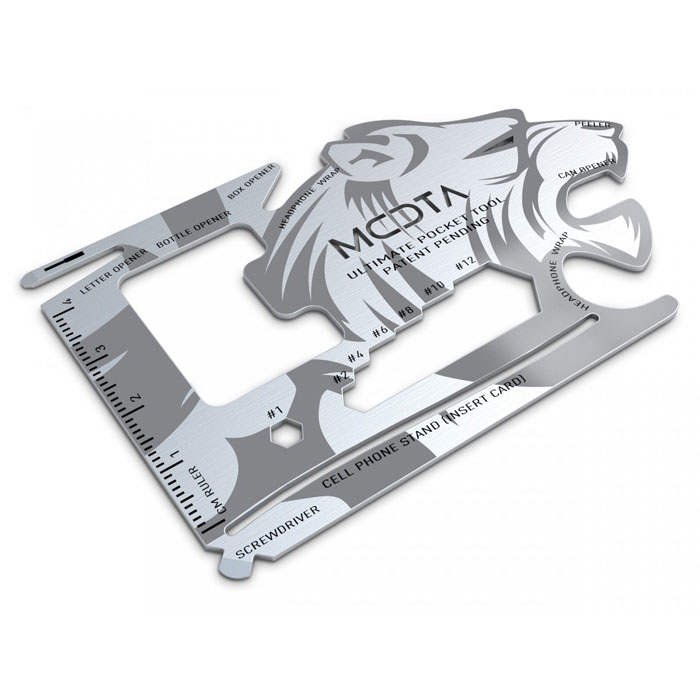 MOTA 18-in-1 Lion Head Tool, в отличии от других мультитулов выполнен в виде плоской миниатюрной карточки — отвечает требованиям TSA. Он не имеет острых углов, открытых режущих или колющих выступов, опасных при использовании и транспортировке. Хранить такой, размером с кредитную карту, инструмент можно в кармане, портмоне, блокноте или записной книжке.