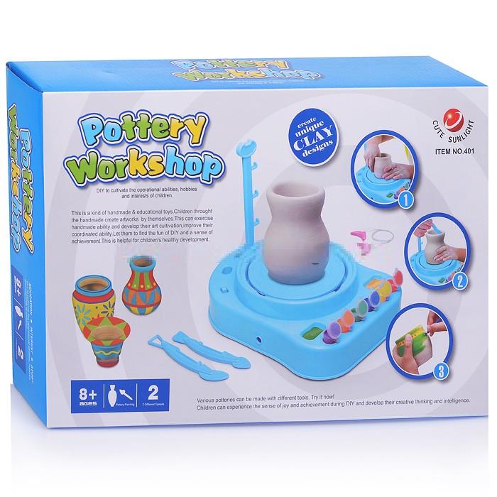 Набор Pottery Workshop - это портативная гончарная мастерская. Набор содержит настоящую глину и компактный гончарный круг, который упросит ребенку процесс лепки. Занятия с Pottery Workshop дадут возможность ребенку ощутить себя настоящим гончаром, создавая посуду, вазочки, горшки для цветов и многое другое. Упругая глина и крутящийся гончарный круг дадут необходимую нагрузку для пальчиков, способствуя развитию мелкой моторики и пространственного мышления. В набор входят краски для декорирования изделий, что позволит ребенку научиться правильно сочетать цвета, развивая чувство цвета и эстетическое восприятие. Рекомендованный возраст: от 8 лет