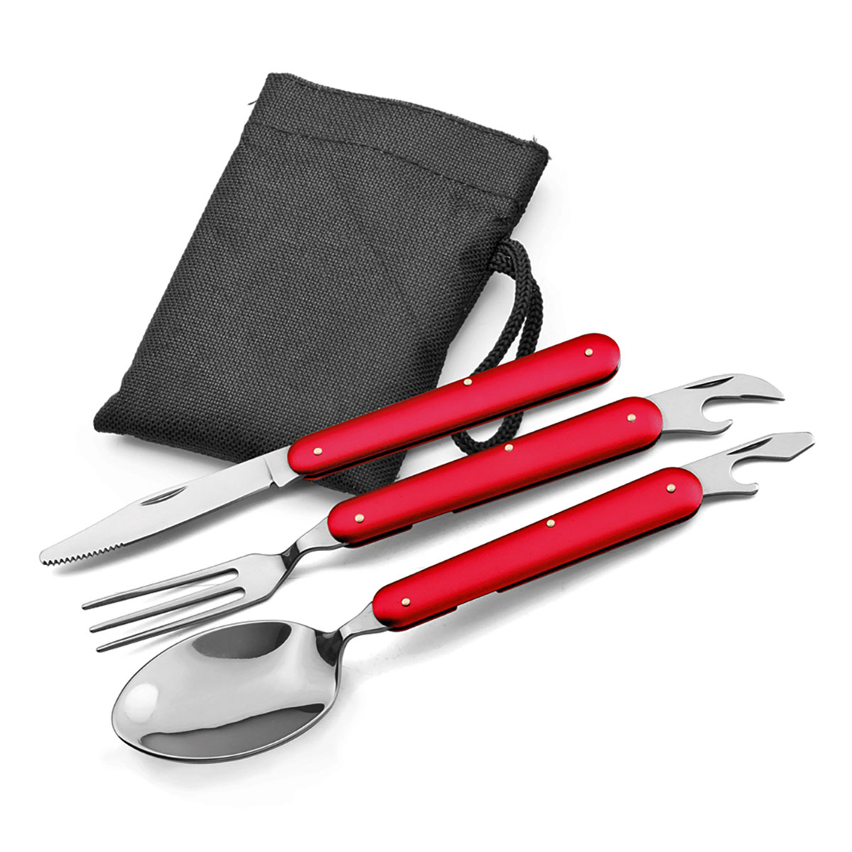 Походный столовый набор, выполненный из нержавеющей пищевой стали.