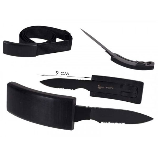 Ремень с ножом-пряжкой пригодится во многих жизненных ситуациях. Это и стильный аксессуар, и полезный в походе инструмент, и уникальное средство для собственной безопасности. Клинок, спрятанный в бляхе, абсолютно не заметен, имеет специальную фиксацию для защиты от выпадения, а при необходимости в считанные секунды приводится в боевую готовность. Острый скрытый нож в ремне имеет специальную изогнутую форму для того, чтобы удобно резать твердые предметы.
