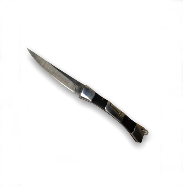 Нож автоматический складной B3989. Прочное лезвие из нержавеющей стали.Имеет отверстие для темляка.Складная модель ножа компактна, удобна в транспортировке и функциональна в применении. Такой нож ― непременный и надежный спутник охотника, рыбака или туриста. Качественный нож в походе и на охоте выполняет множество задач.
