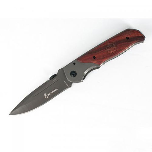 Рукоятка сделана из деревянных накладок, благодаря им рука не скользит и надежно фиксируется. Еще на рукоятке расположено специальное крепление-клипса, она позволяет носить нож, зацепив его за край одежды, кармана рюкзака или сумки.