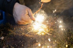 Искра высекается при помощи ножа или любого острого металлического предмета. С помощью огнива можно легко поджечь бумагу, сухую траву и другие легковоспламеняющиеся материалы.