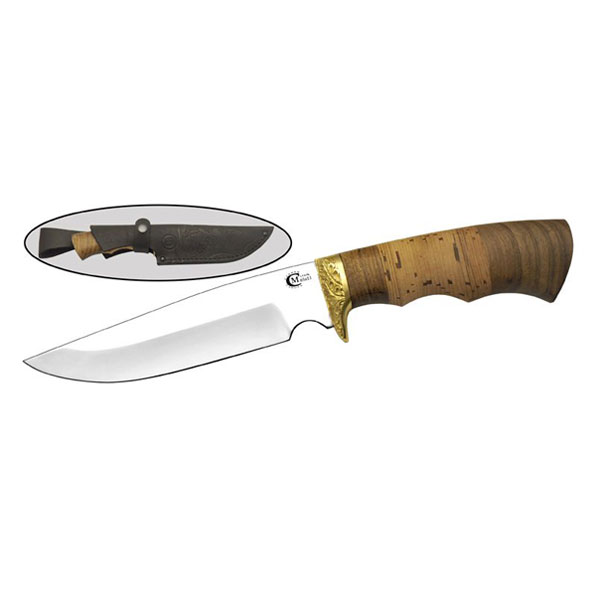 Тип-Ножи с фиксированным клинком Страна-Россия Чехол-кожа Длина клинка, мм 147 Толщина клинка, мм 3,9 Общая длина, мм 270 Материал рукояти*береста Сталь*65Х13 Твердость стали*56-58 Масса, гр.150
