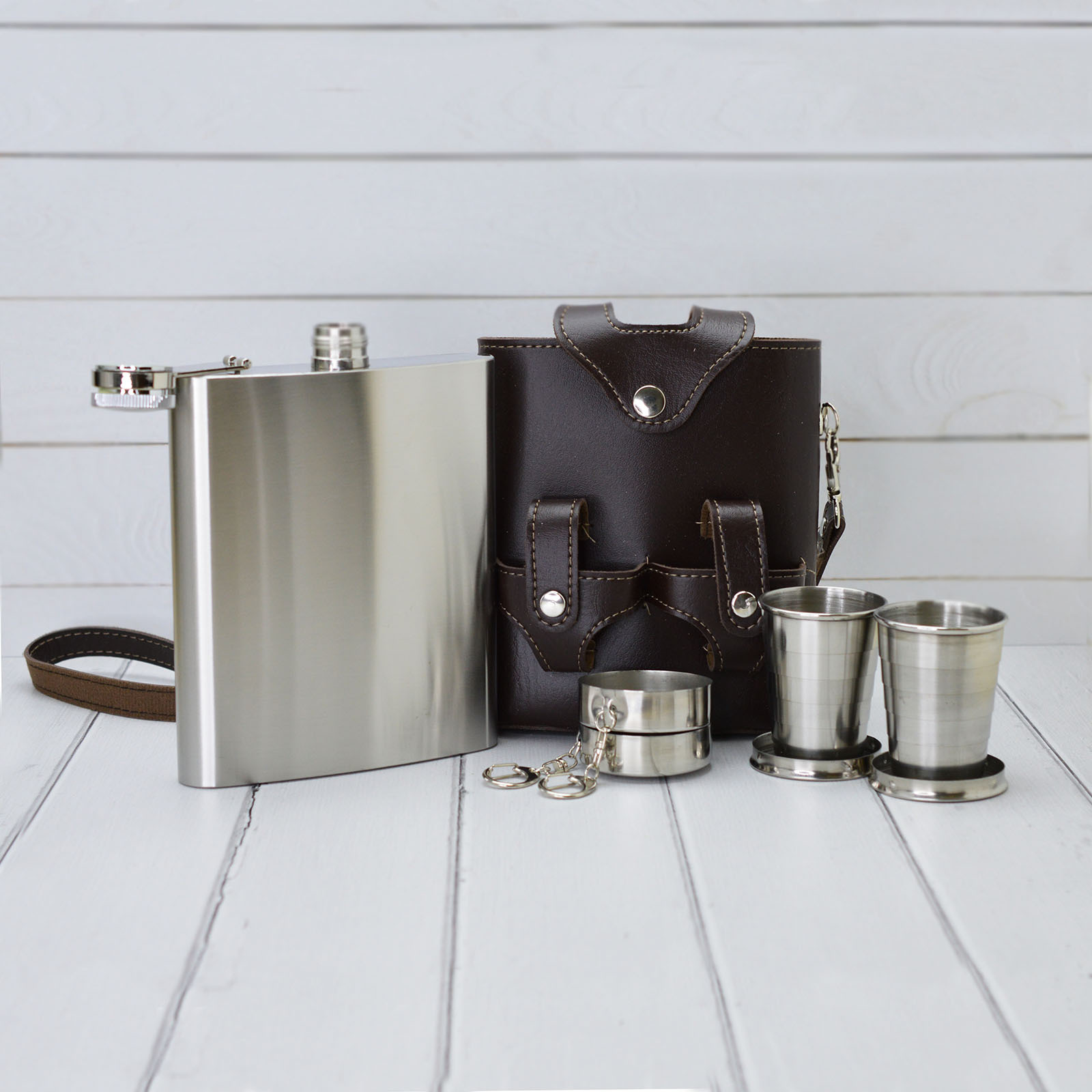 Подарочный набор фляжка 500 мл и 2 складных стакана с крышкой