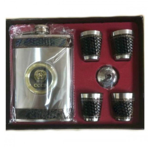 Элегантный подарочный набор выполнен из высококачественной нержавеющей стали и украшен гербом РФ. В набор входит фляга для спиртных напитков из стали с отделкой "под кожу" и гербом России, воронка и четыре стопки. Набор упакован в подарочную коробку. Набор будет великолепным подарком вашим друзьям и коллегам.