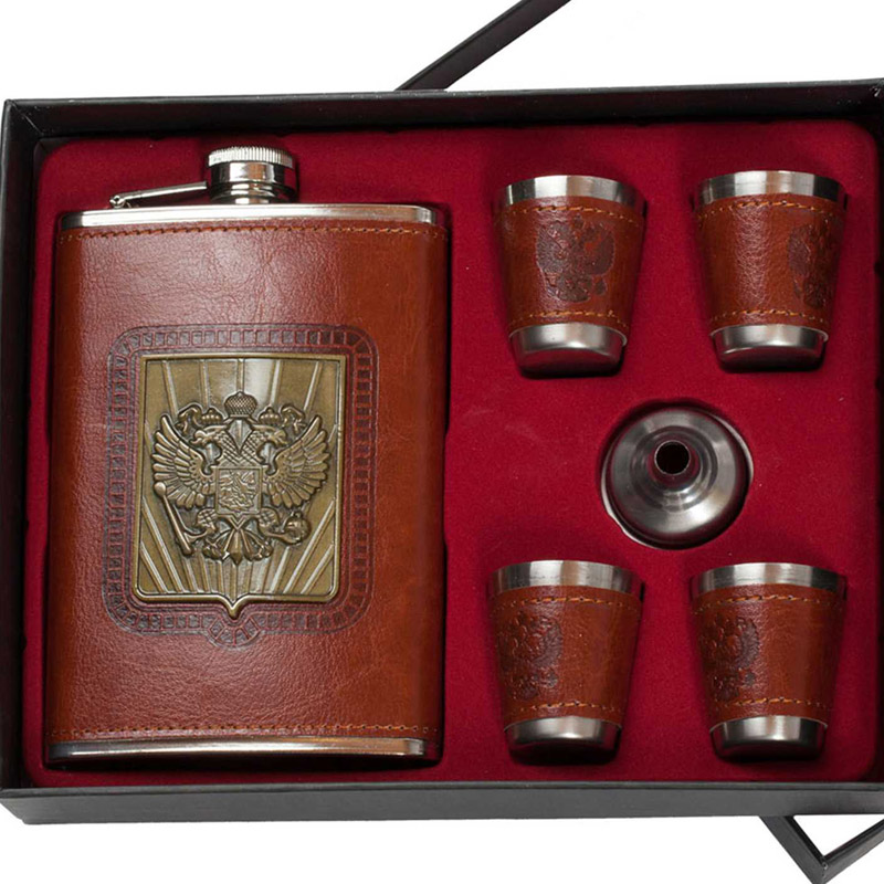 Подарочный набор Герб России (фляжка, 4 стопки, воронка)