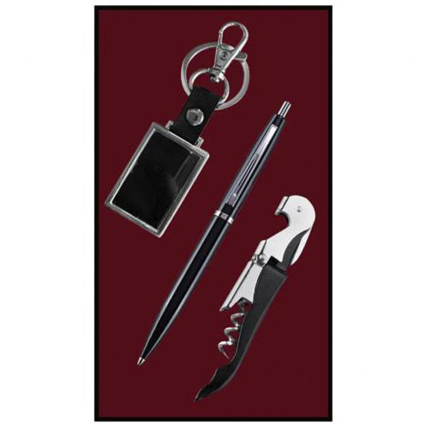 Подарочный набор "Moongras" №3 с брелоком черный квадрат, авторучкой и ножом сомелье
