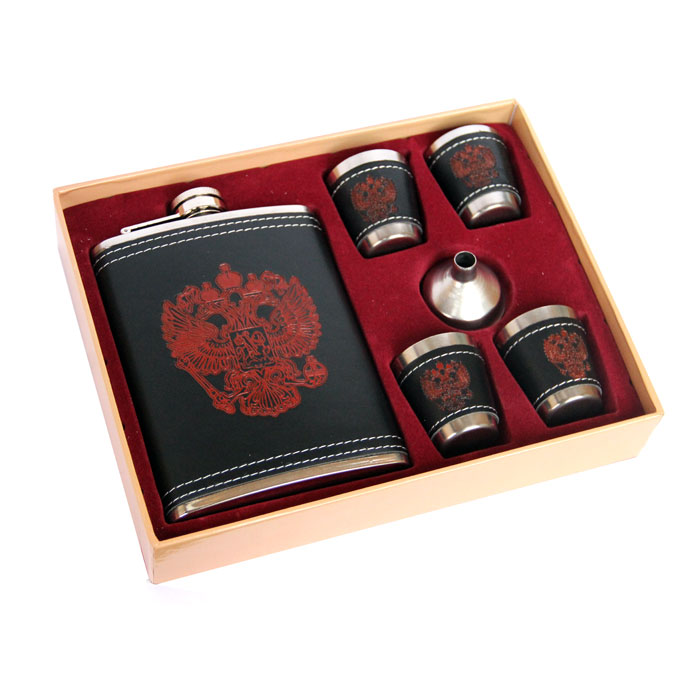 Красивый подарочный набор: Фляжка (225мл), 4 стаканчика, воронка