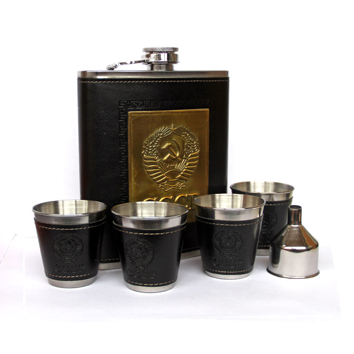 Красивый подарочный набор: Фляжка (540мл), 4 стаканчика, воронка