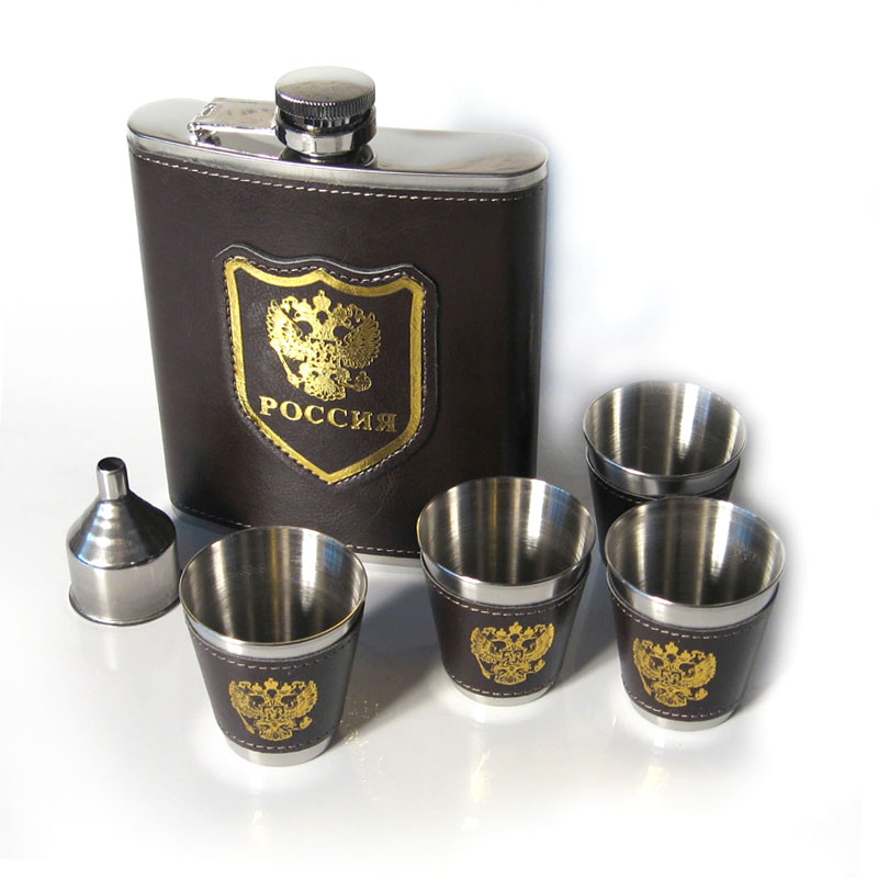 Подарочный набор "Россия": фляжка 9oz 0,25 литра, 4 стопки, воронка