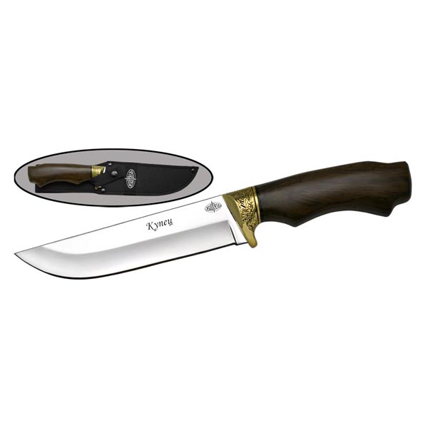 Производитель- Витязь Страна- КНР Oбщая длина- 281 мм Длина клинка- 148 мм Толщина клинка- 2,3 Сталь- 65Х13, Рукоять- дерево Чехол- нейлон