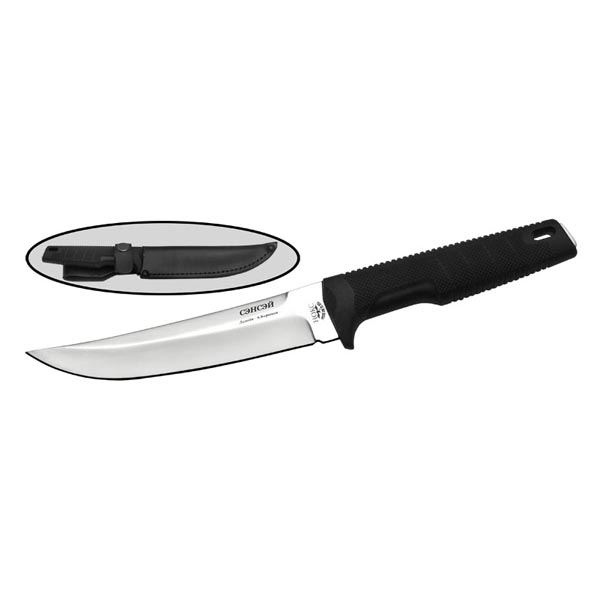 Производитель- Нокс, Страна- КНР, Oбщая длина- 279 мм, Длина клинка- 150 мм, Толщина клинка- 3,9, Сталь- 440, Рукоять- резинопластик, Чехол- кожа