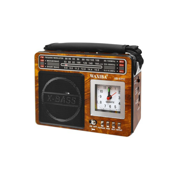 Радиоприемник выполнен в классическом стиле. Радио благодаря большой телескопической антенне и плавной регулировке частоты, имеет хорошее качество приема и отличный звук. Есть USB разъем и слот для SD карт, благодаря которым можно воспроизводить свои любимые записи в mp3 формате. Сделан качественно и надежно.