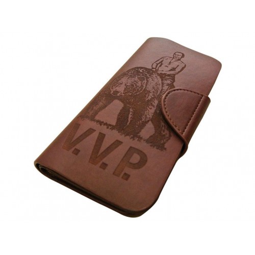 Для ценителей стиля и оригинальности. Изображение Владимира Владимировича на медведе понравится любой категории покупателей. На такой аксессуар обратят внимание и Вас непременно заметят. По функционалу портмоне ничем не отличается от своих предшественников. В него также поместится множество бумажной мелочи, а также документы и кредитные карты.