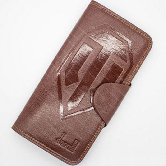 Мужское портмоне для почитателей игры World Of Tanks. В нем есть карманы для паспорта и других документов, карман с прозрачным окошком для водительских прав, 5 отсеков для карточек, карманы для купюр и отделение для смартфона. Изготовлено из натурального материала, которое на ощупь и внешний вид напоминает натуральную кожу.