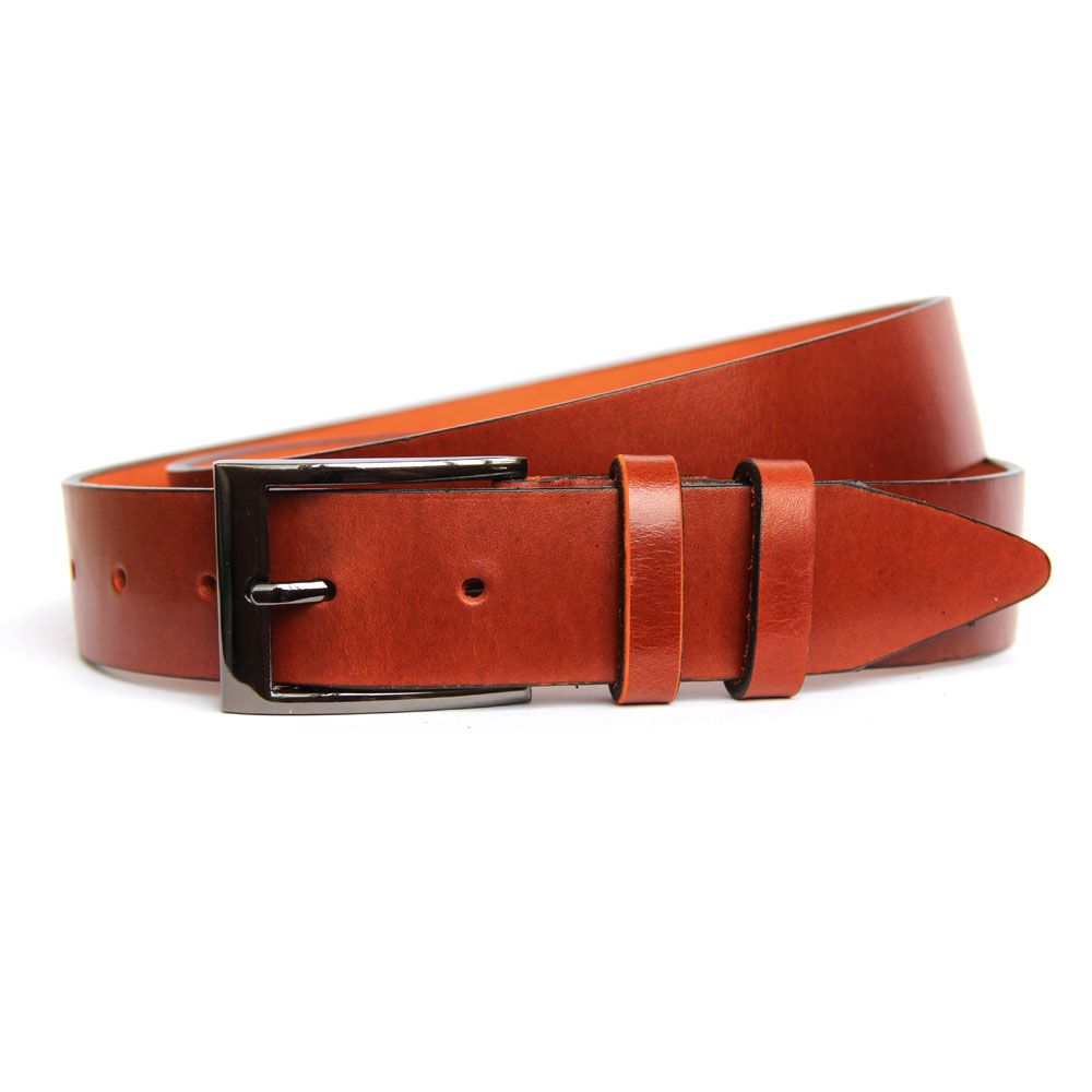 Ремень кожаный однослойный. Прекрасно держит форму и не теряет внешний вид. Сделан из плотной кожи аргентинского буйвола. Частично прошит черной вощеной нитью. Пряжка никелевая глянцевая.